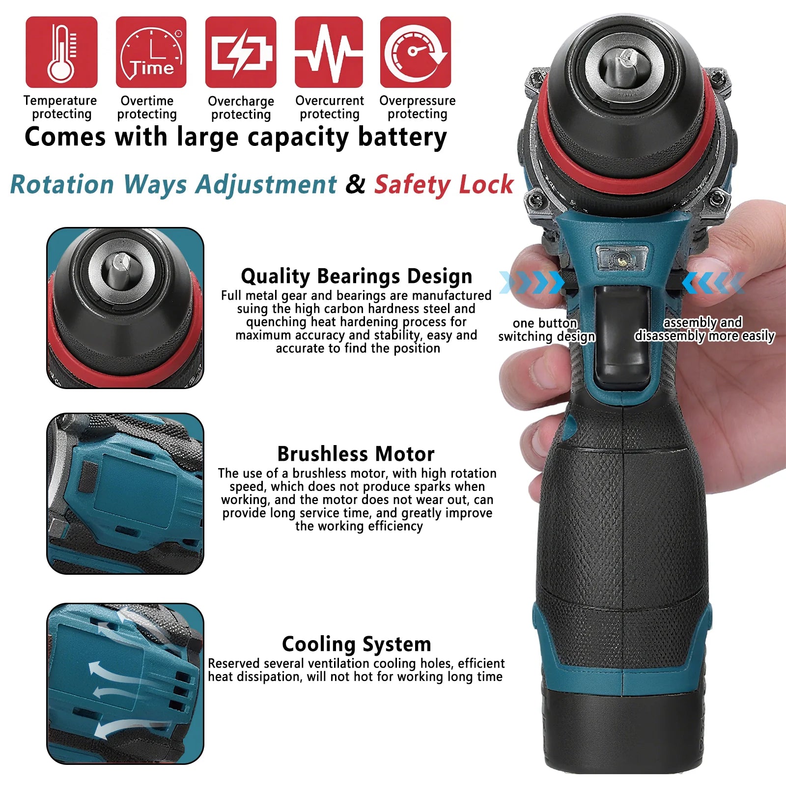 ProduktübersichtDieses 16,8-V-bürstenlose Akku-Bohr- und Schrauberset ist ein vielseitiges Elektrowerkzeug für Heimreparaturen, Möbelmontage und DIY-Projekte. Ausgestattet mit einem leistungsstarken bürstenlosen Motor... Lesen Sie mehr