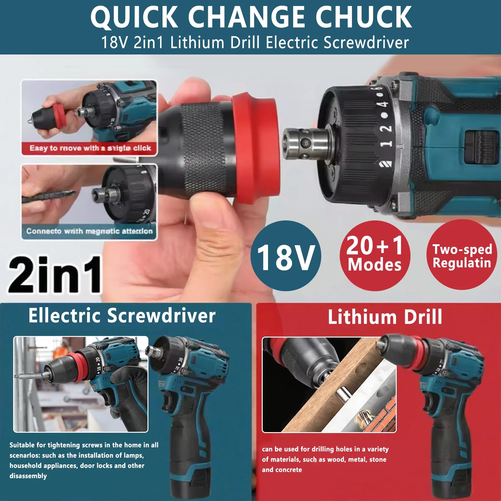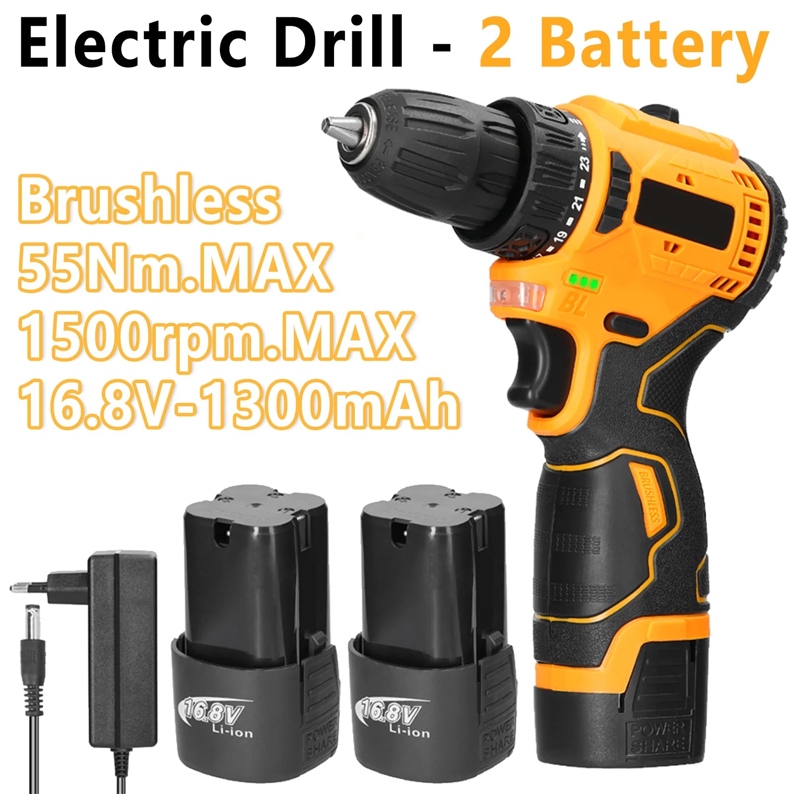16,8V bürstenloser kabelloser Bohr- und Schrauberset mit 45Nm Drehmoment - zwei Akkus für Heimwerker-Reparaturen