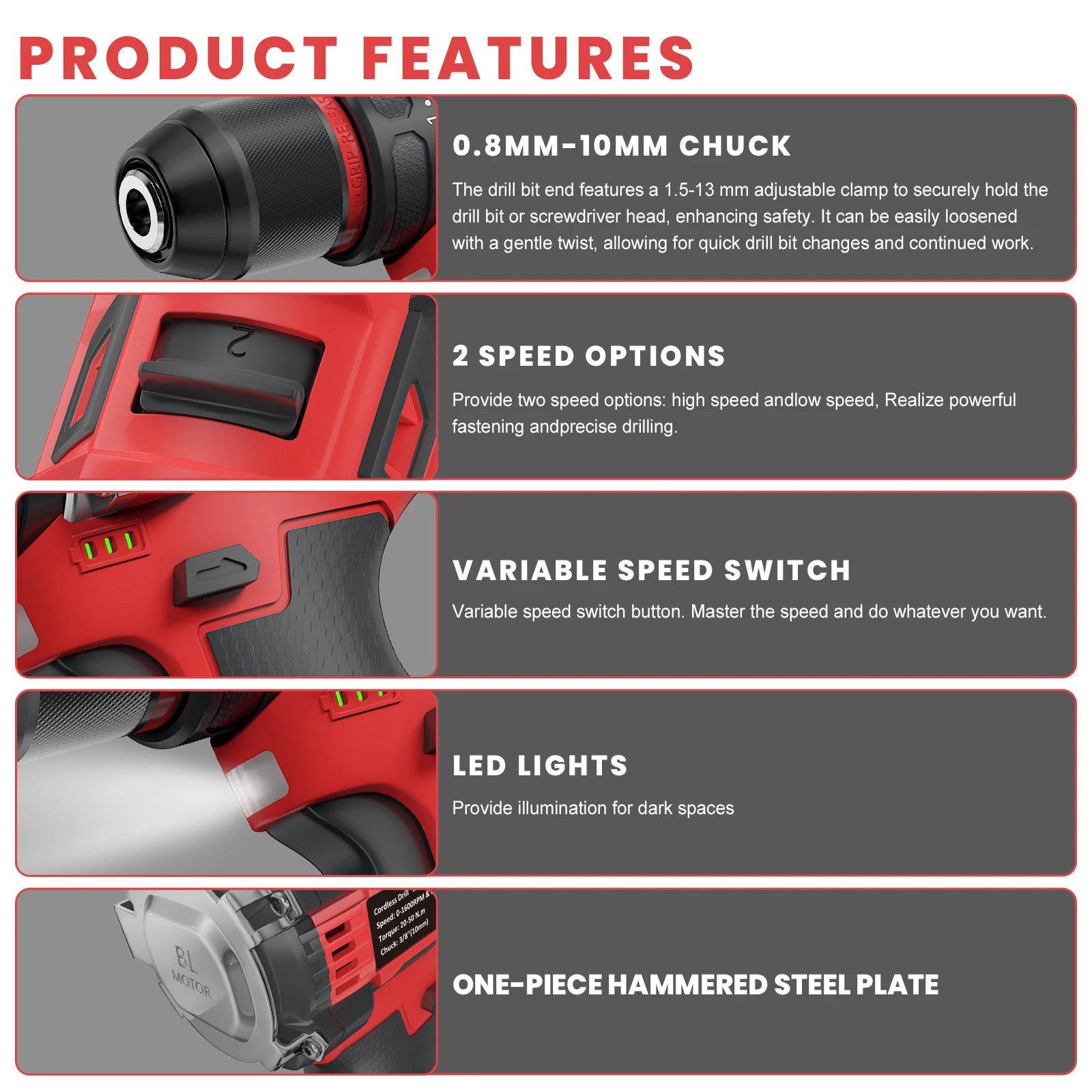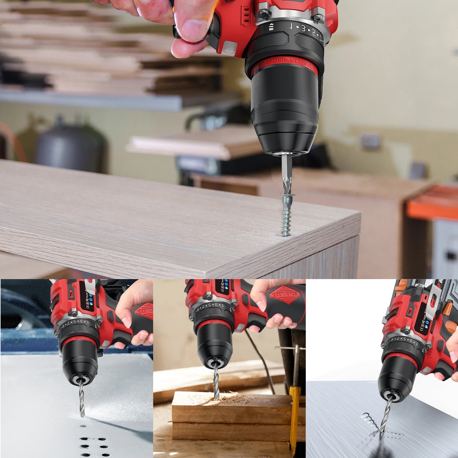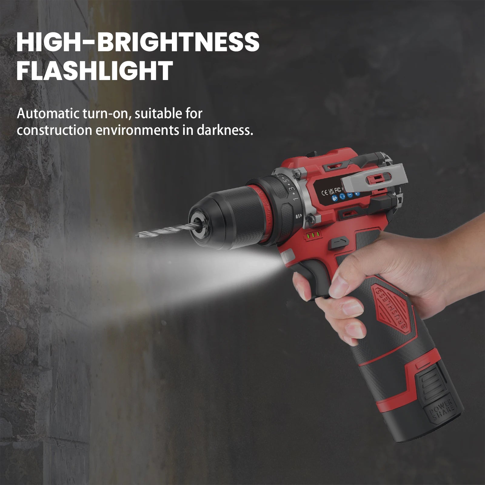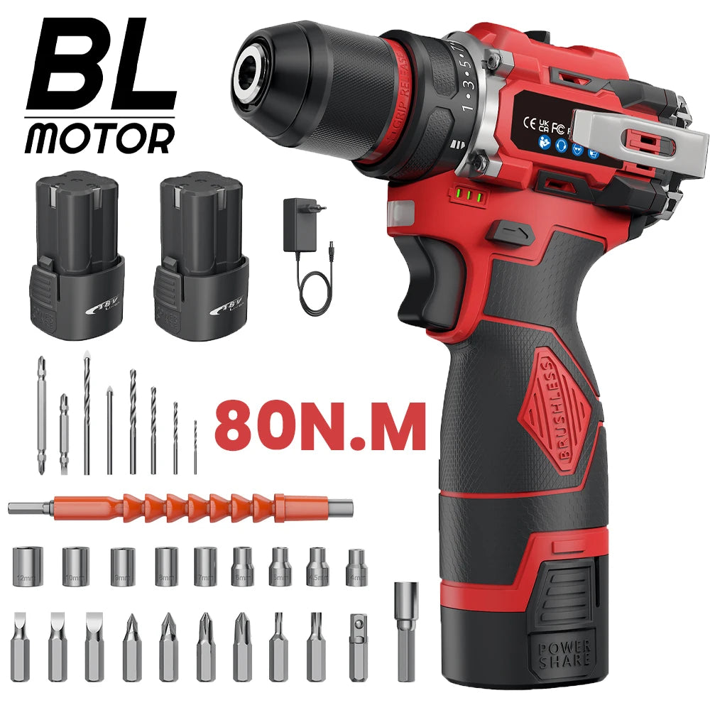 16,8V Akku Bürstenloser Schlagbohrschrauber 80NM Drehmoment 2-Gang Werkzeug mit 10mm Bohrfutter