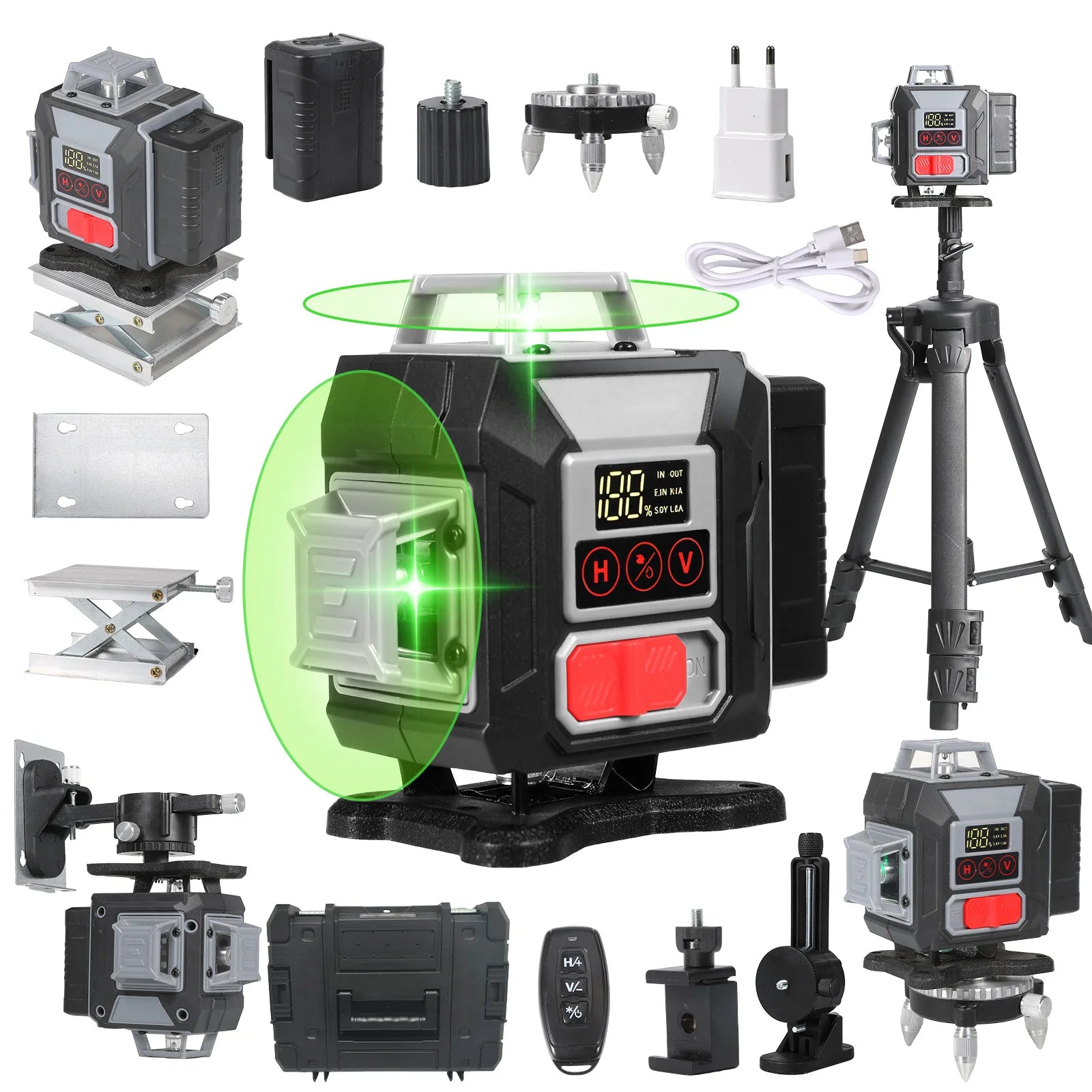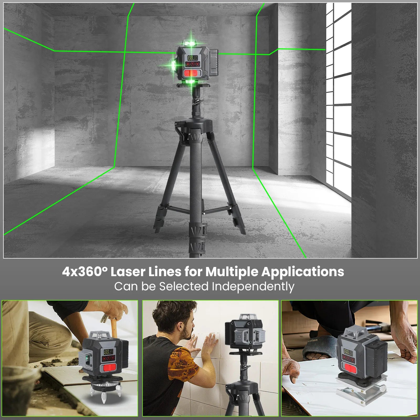 16-Linien 360-Grad Grünstrahl Laser-Nivelliergerät mit Stativ, selbstnivellierendes horizontales und vertikales Werkzeug