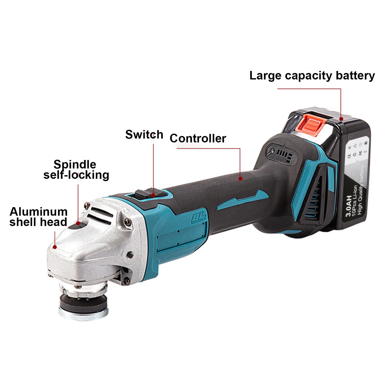 18V Bürstenloser kabelloser Winkelschleifer zum Schneiden und Polieren mit intelligentem Fehleranzeigebildschirm