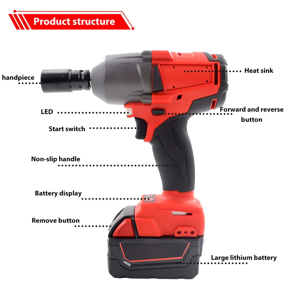 18V kabelloser bürstenloser Schlagschrauber 1/2-Zoll-Antrieb 1300NM hohes Drehmoment für Milwaukee-Akkus