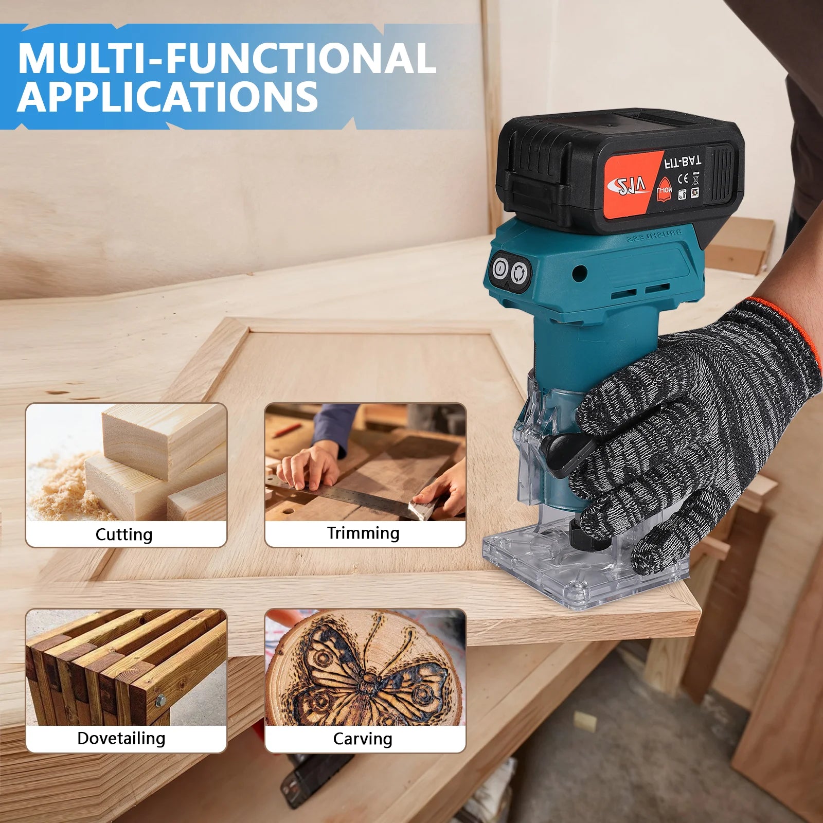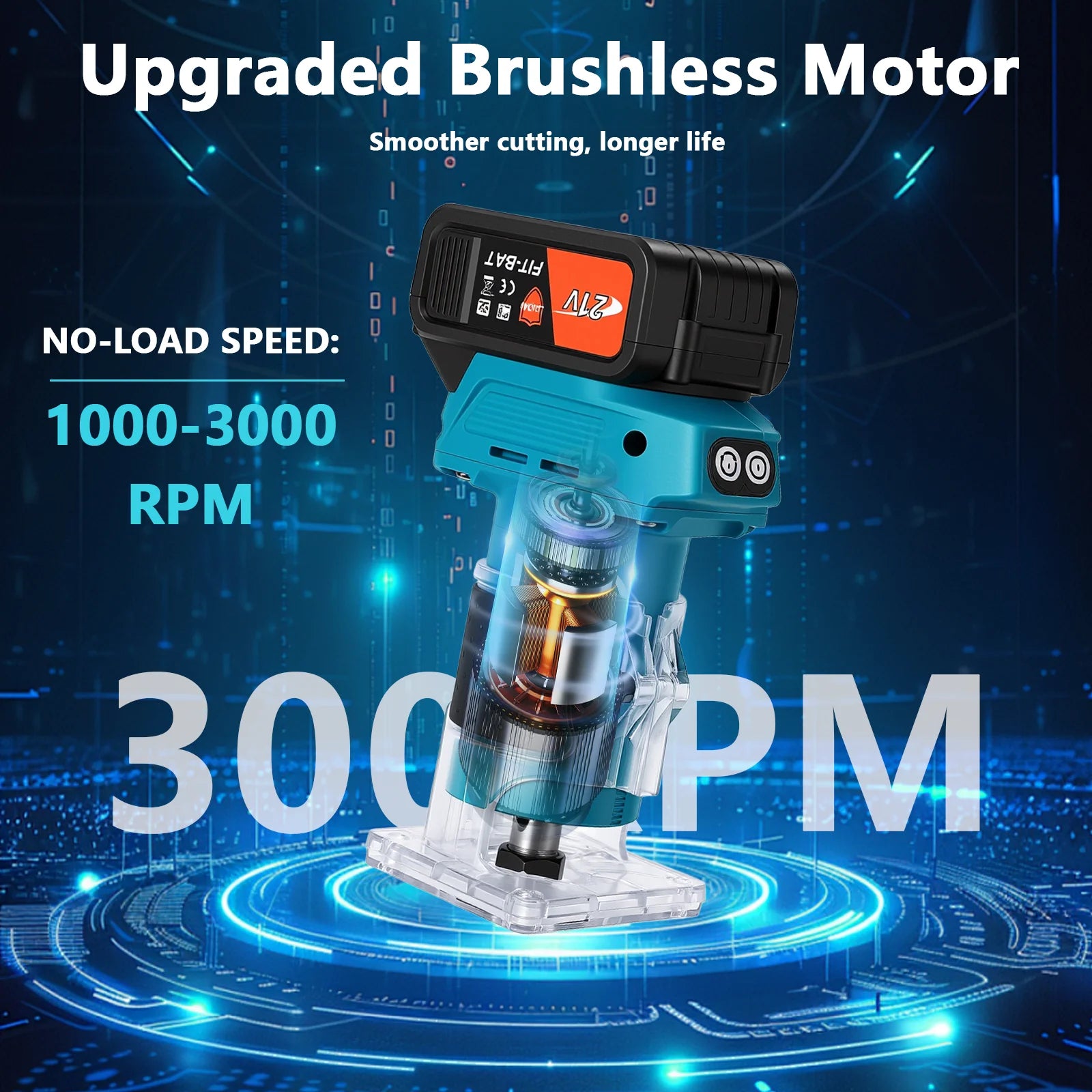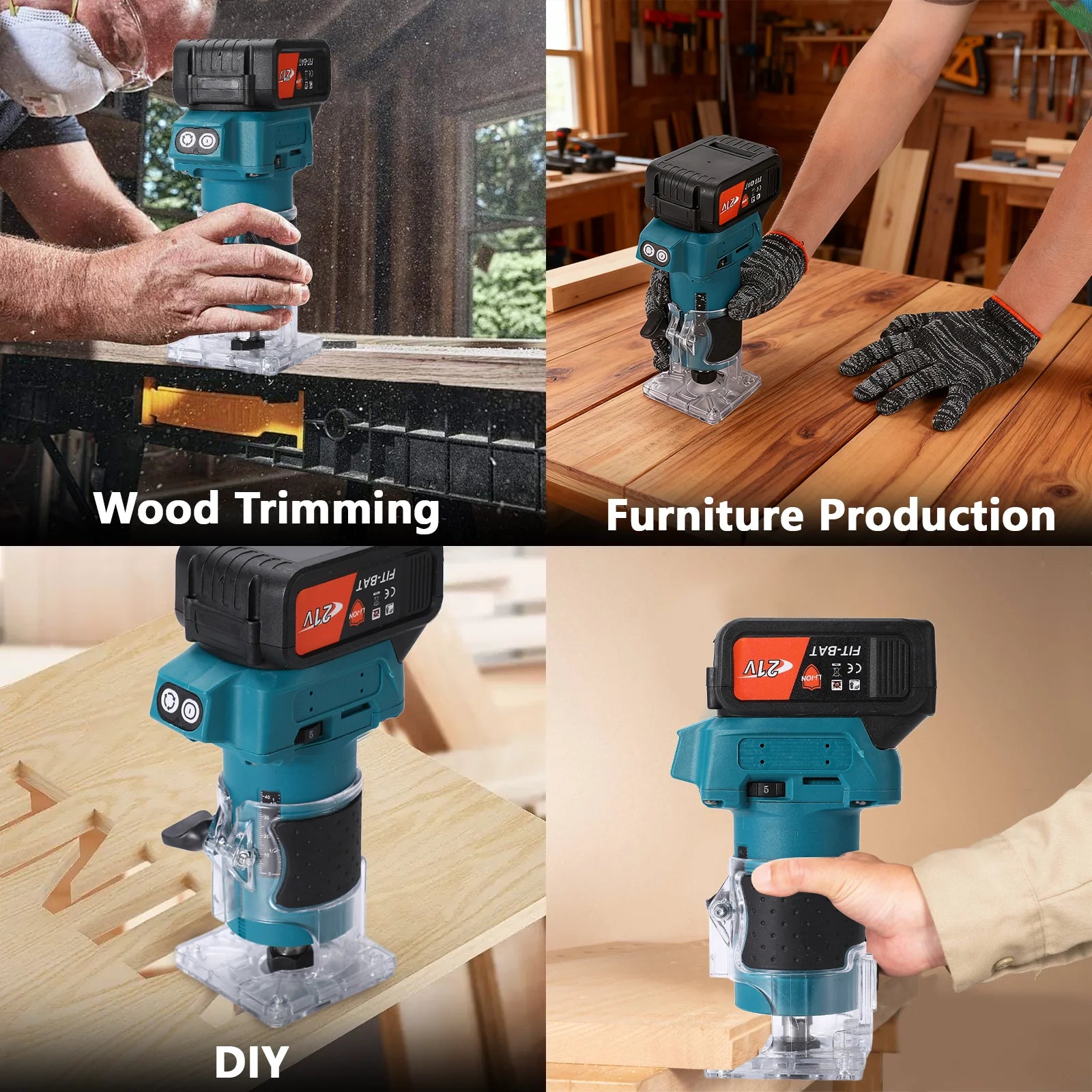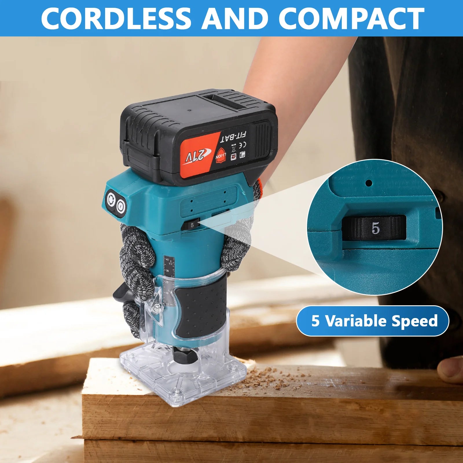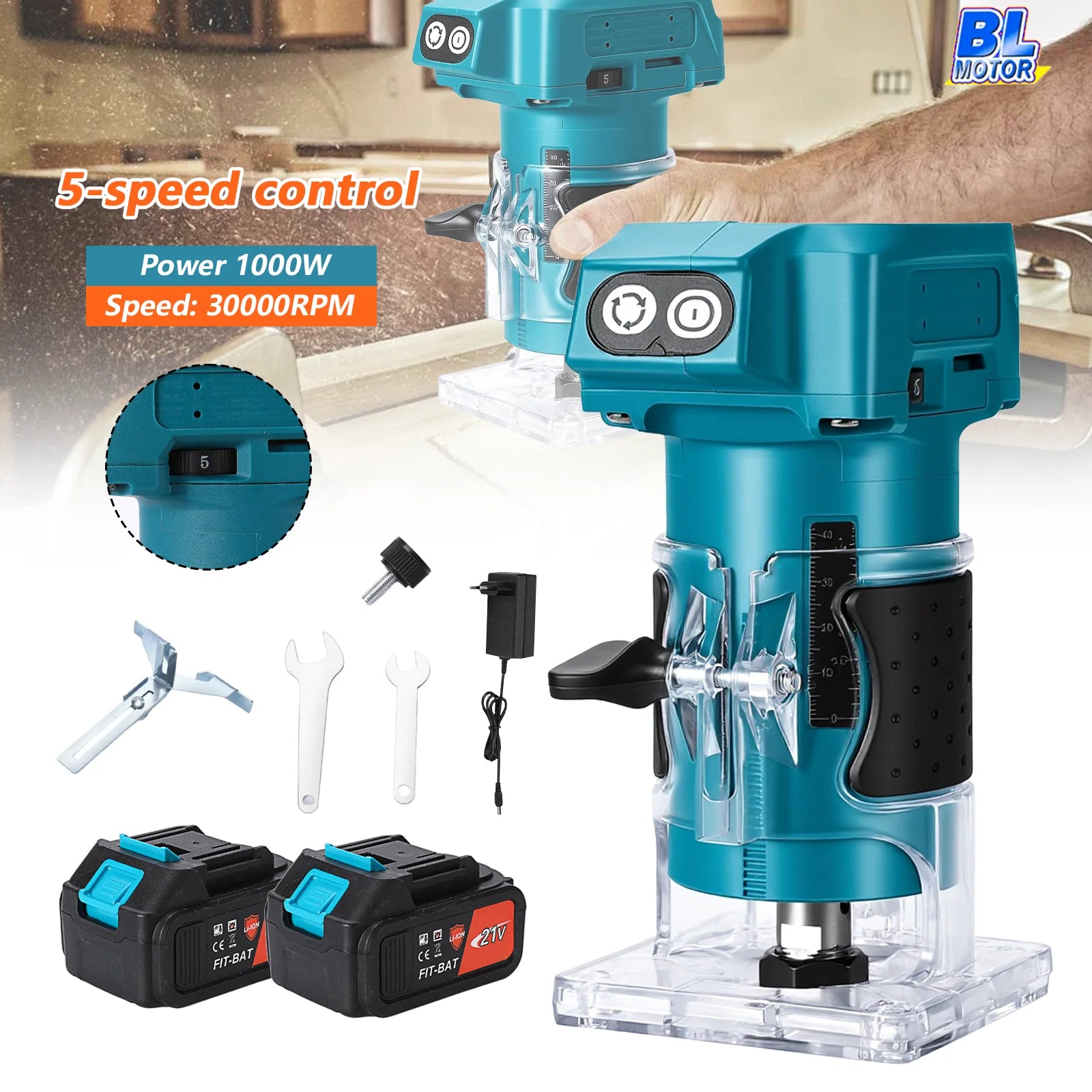 18V Akku-Holzfräse 1000W Elektrowerkzeug mit 1/4 Zoll Spannzange und 5-Gang-Verstellung