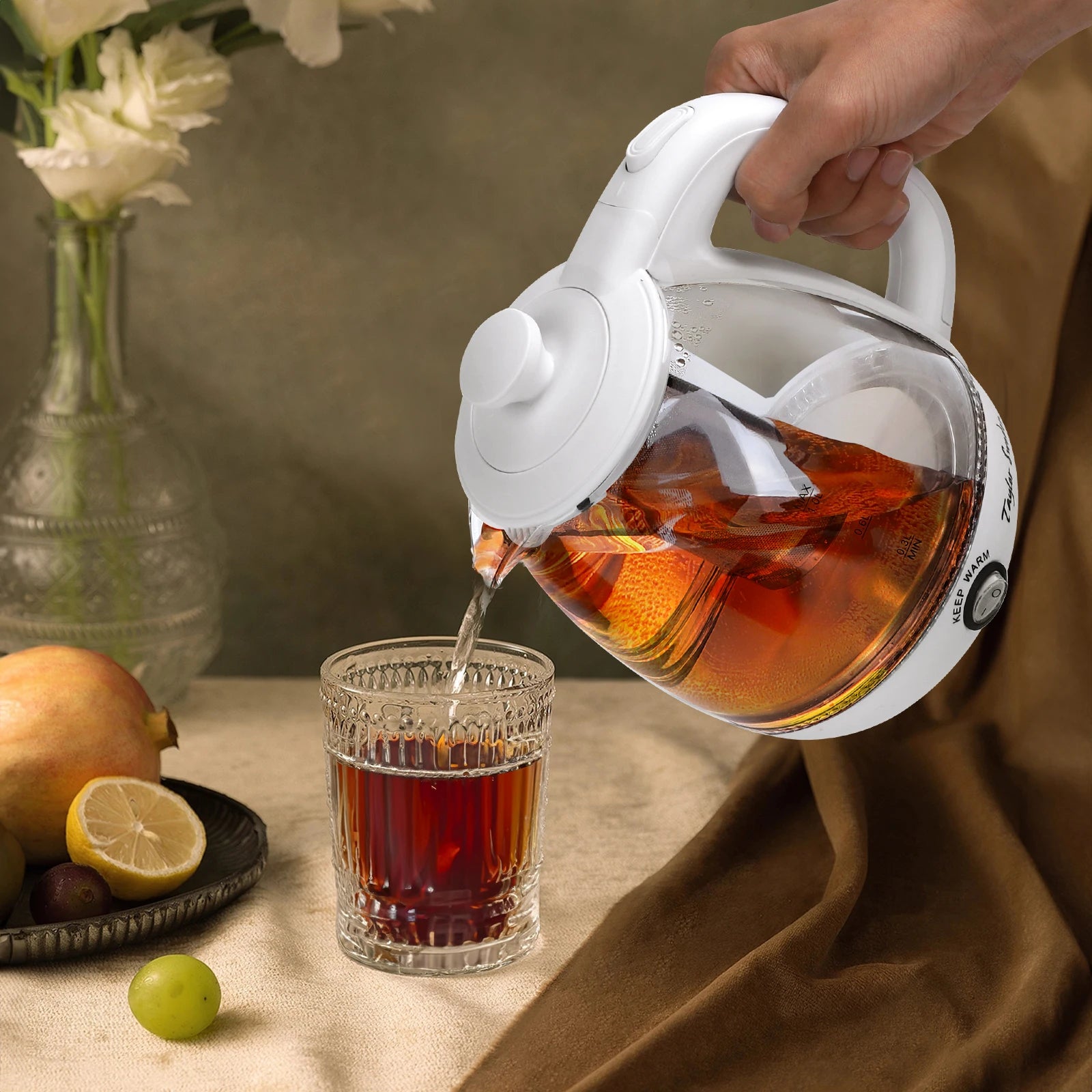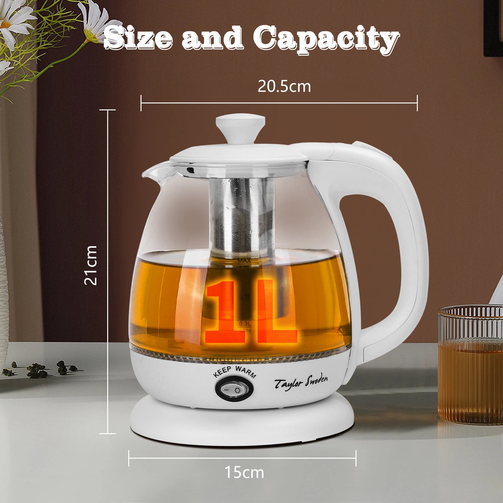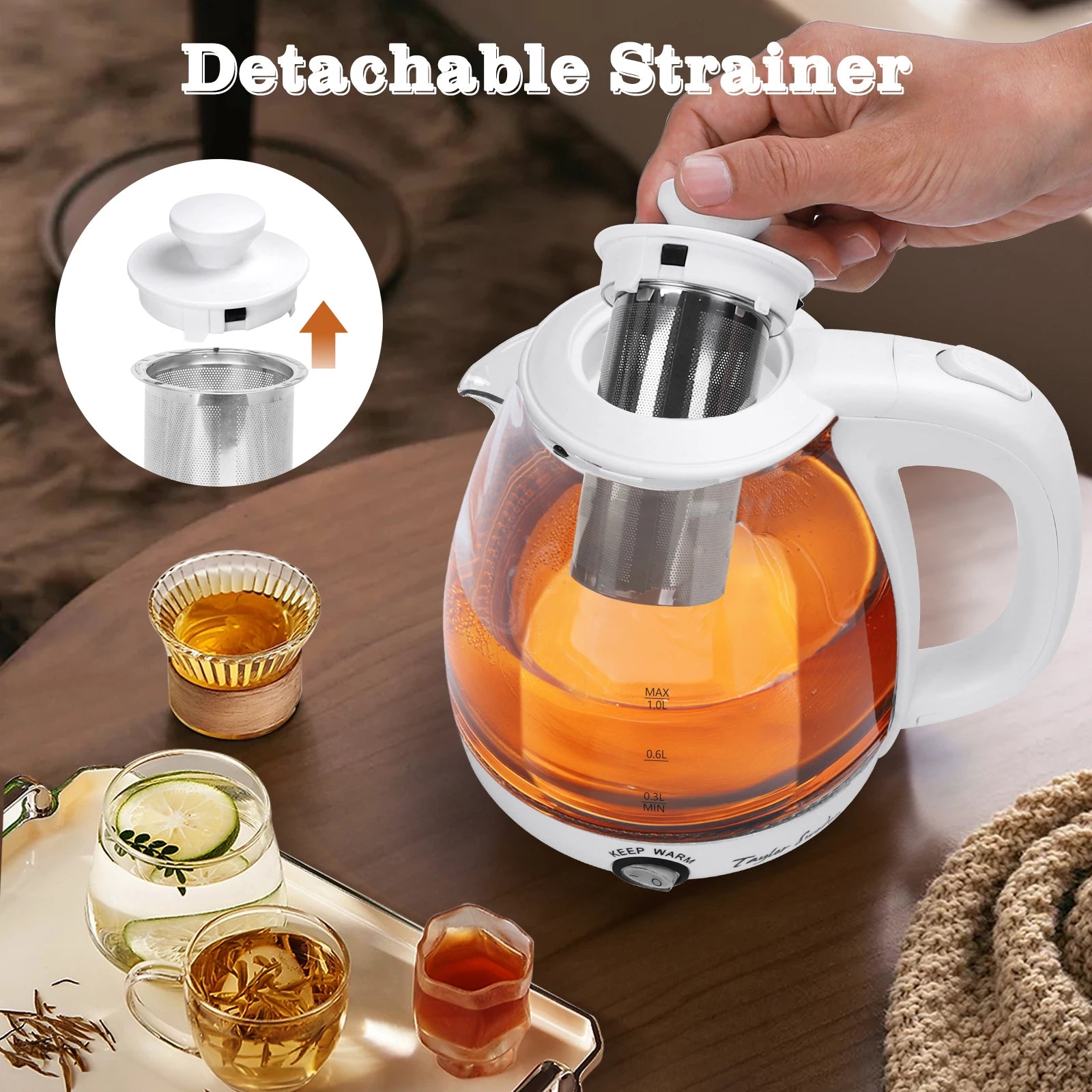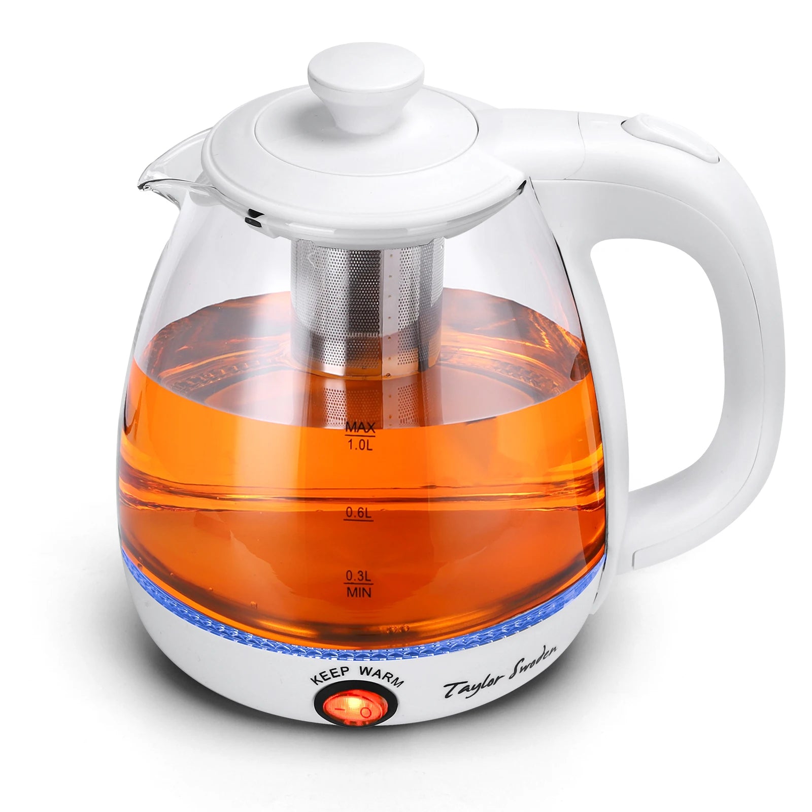 1L Glas-Elektrowasserkocher mit LED-Beleuchtung, 2200W Schnellkochfunktion und Teesieb, Warmhaltefunktion
