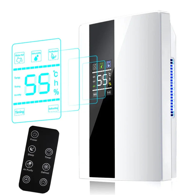 2-in-1 Luftentfeuchter und Luftreiniger mit Fernbedienung, 2,5L Tank, geräuscharmer Betrieb für Schlafzimmer
