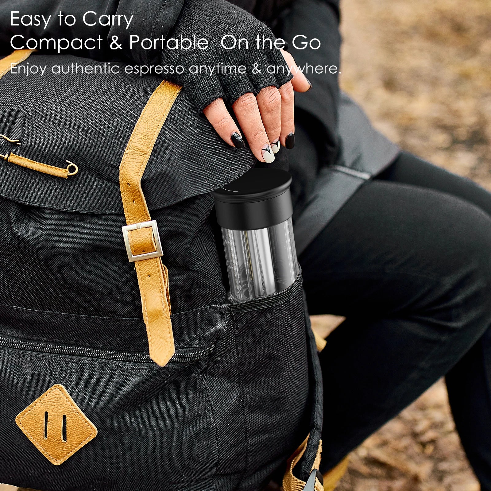 2-in-1 Tragbare Kaffeemaschine für Kapseln und gemahlenen Kaffee, Hand-Espressomaschine für unterwegs