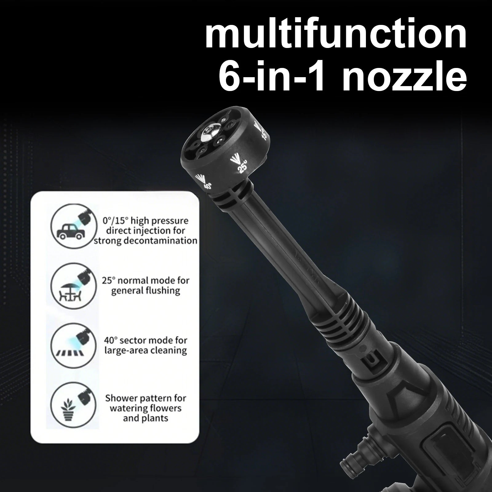Lavadora a presión portátil inalámbrica de 21V con boquilla 6 en 1 para limpieza de autos y mantenimiento del hogar