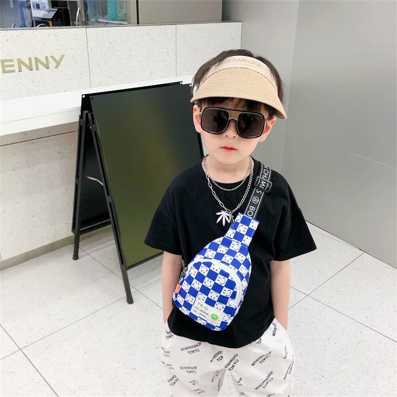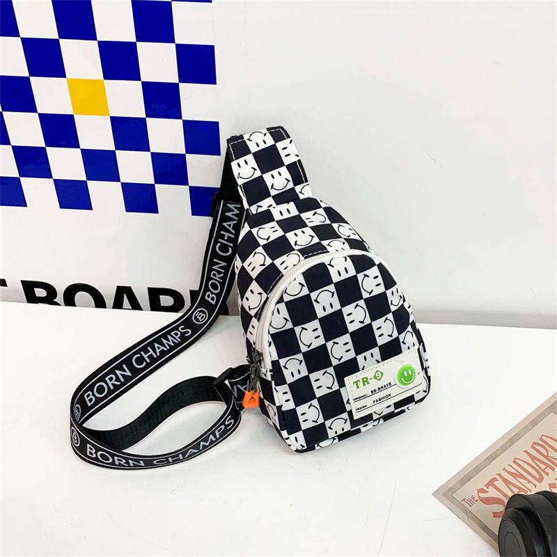Sac poitrine léger à carreaux contrastés pour enfants sac messager polyvalent ceinture et épaule