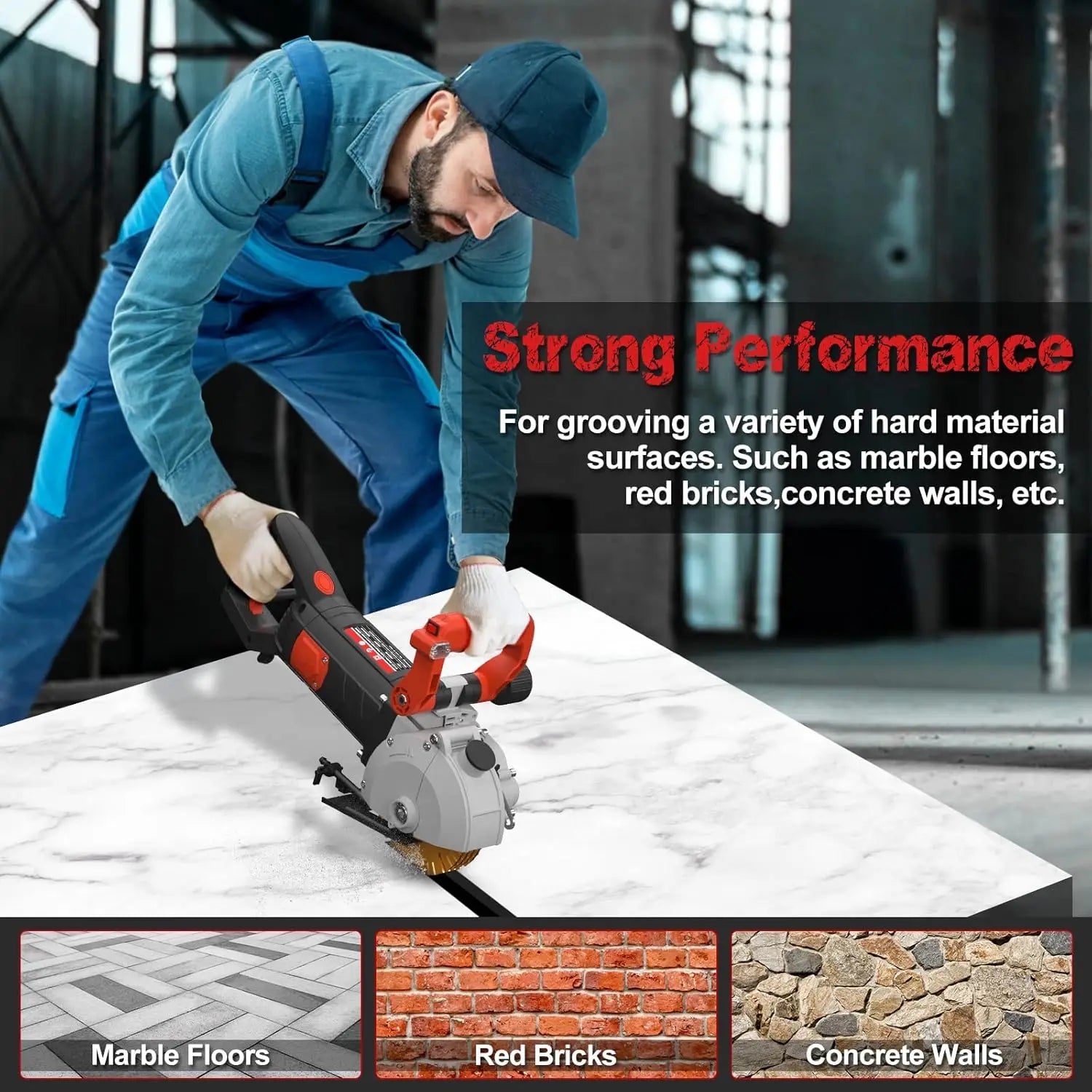 Tagliapareti Elettrico 4800W Macchina per Scanalature in Calcestruzzo 133mm con Guida Laser 220V/50Hz