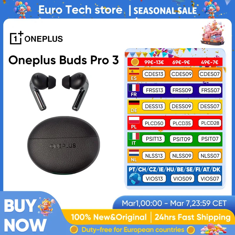 Auricolari wireless OnePlus Buds Pro 3, cancellazione attiva del rumore 50dB, batteria 43h, Bluetooth 5.4, IP55