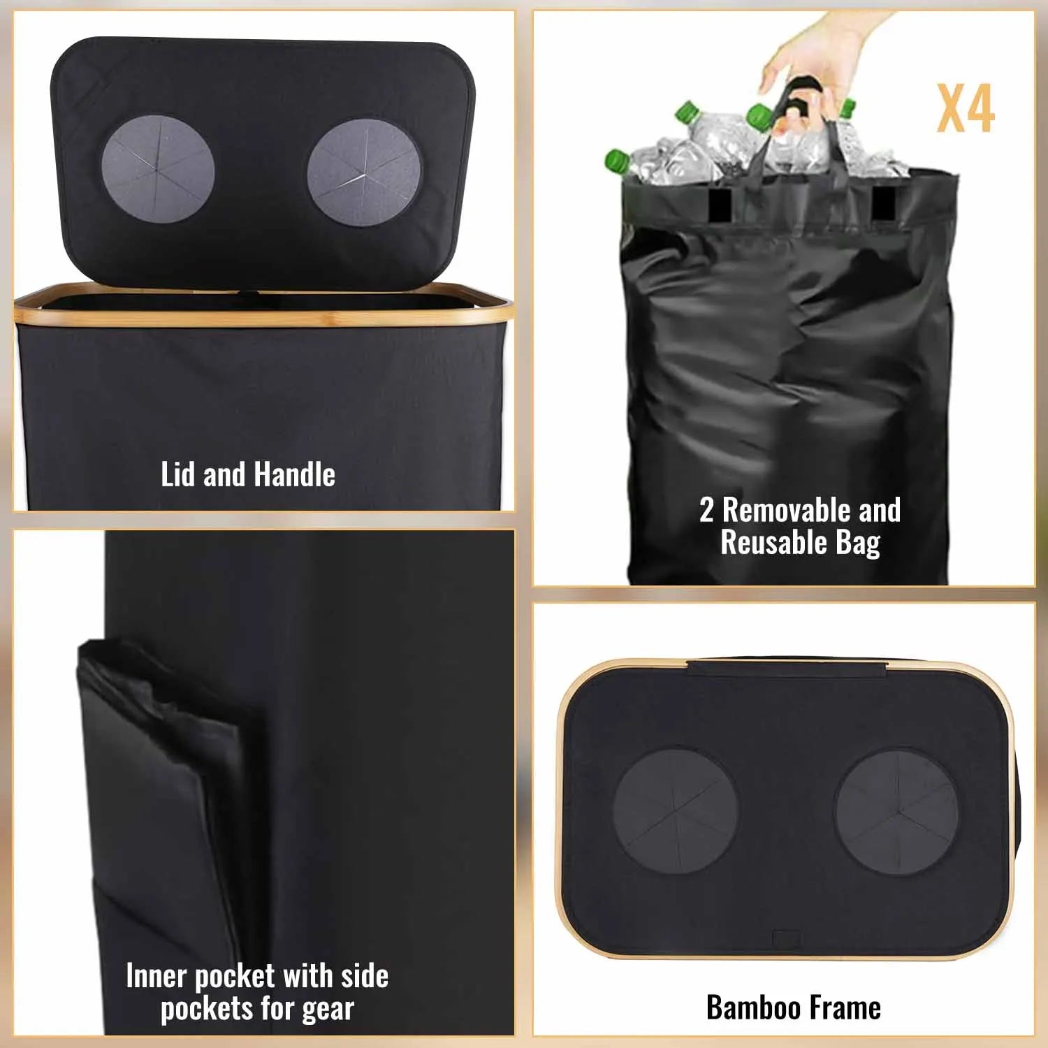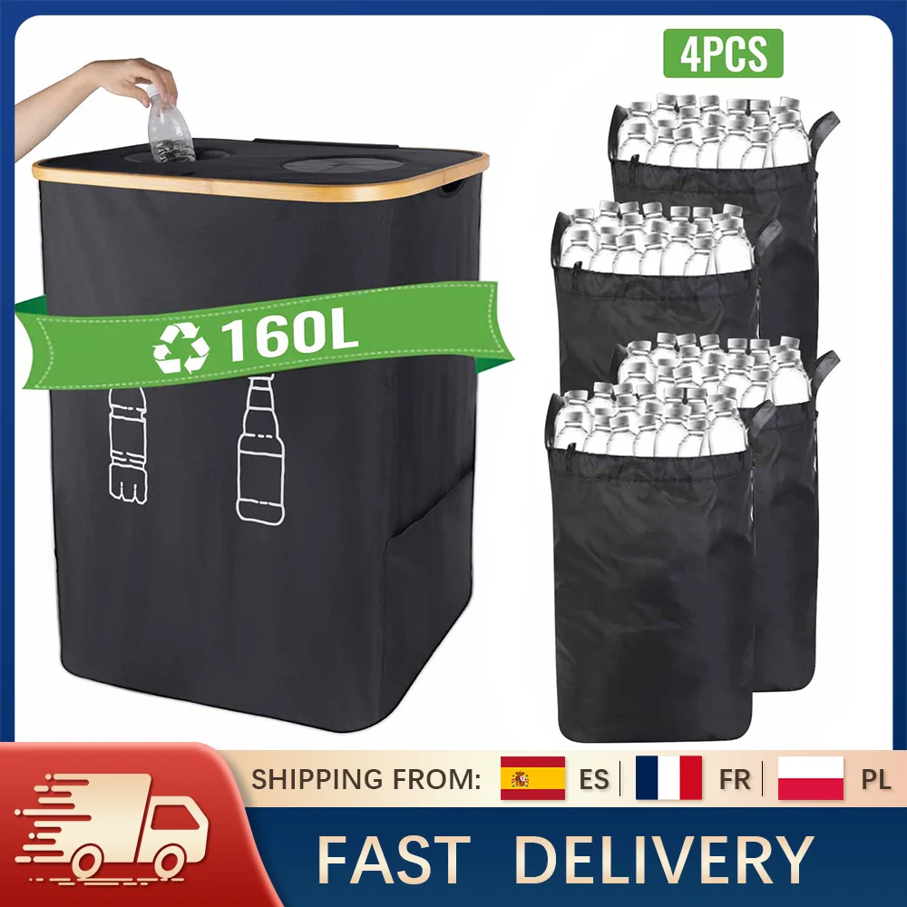 160L Extra Large Recycling Bin, Foldable Waterproof Storage Bucket for Bottles Cans and Laundry