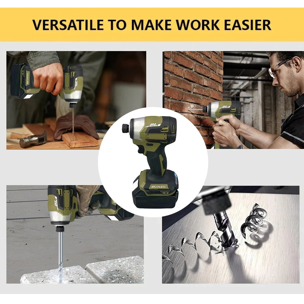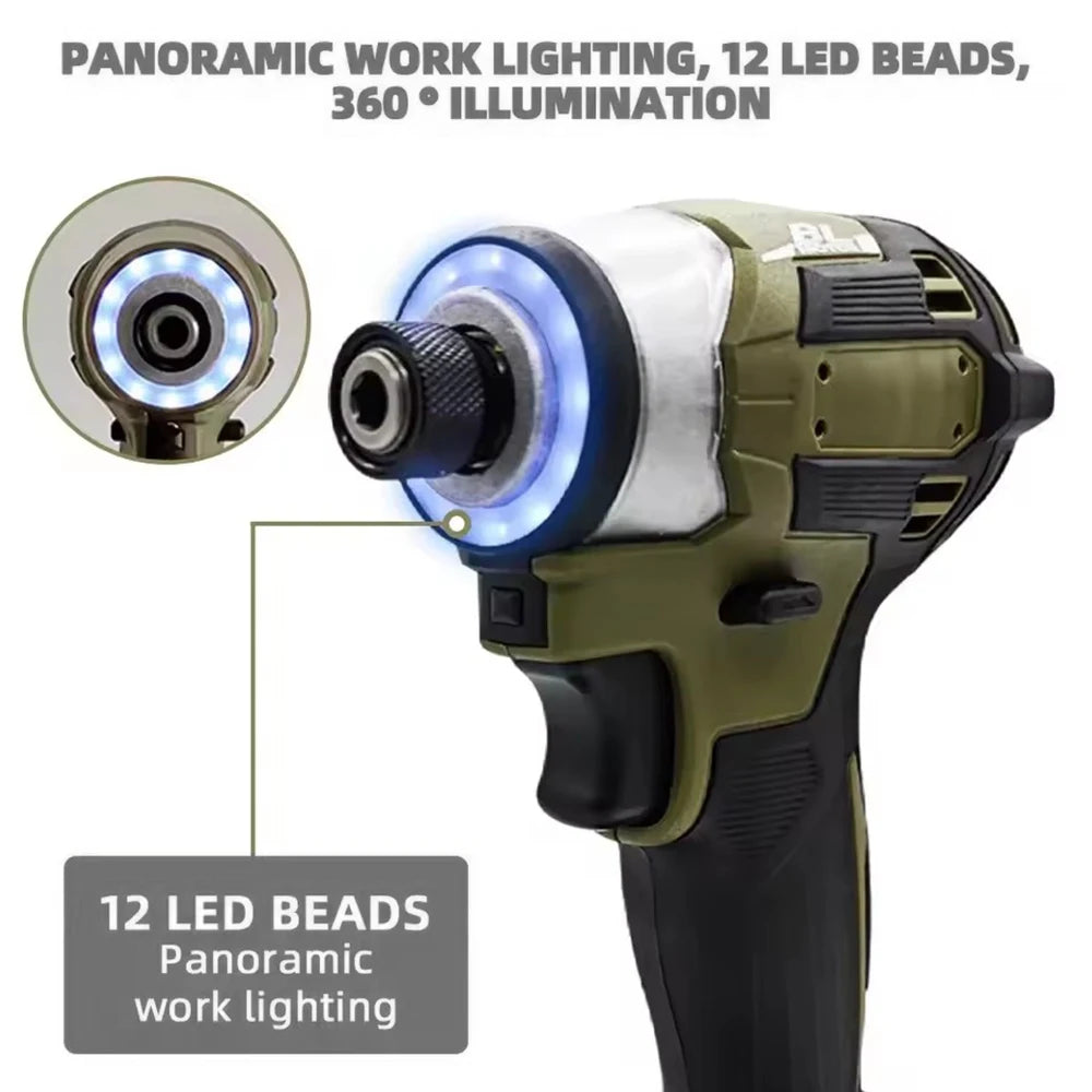 21V Cordless Brushless Impact Wrench and Screwdriver Set with LED Light for Car Repair and Home DIY