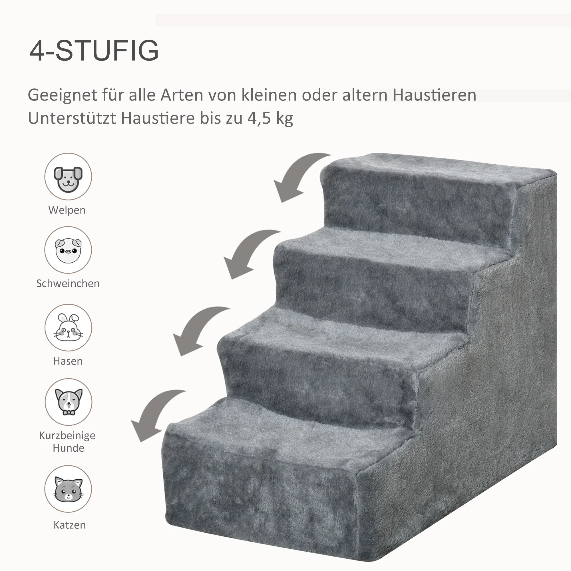 4-Step Pet Stairs for Dogs and Cats, Soft Flannel Ramp for Bed and Sofa, Portable Support for Small Pets