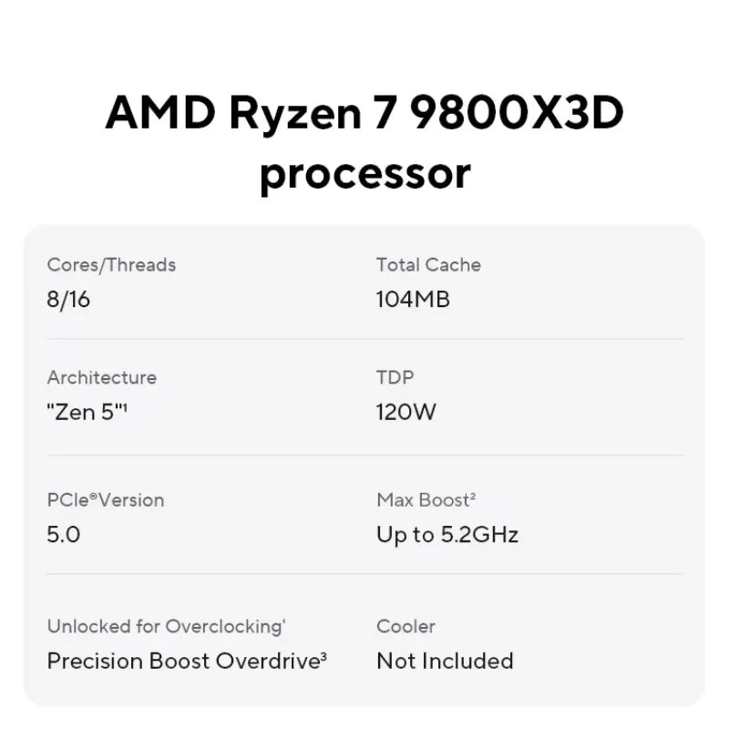 AMD Ryzen 7 9800X3D 8-Core 16-Thread Desktop Processor with 104MB Game Cache and 5.2GHz Clock Speed