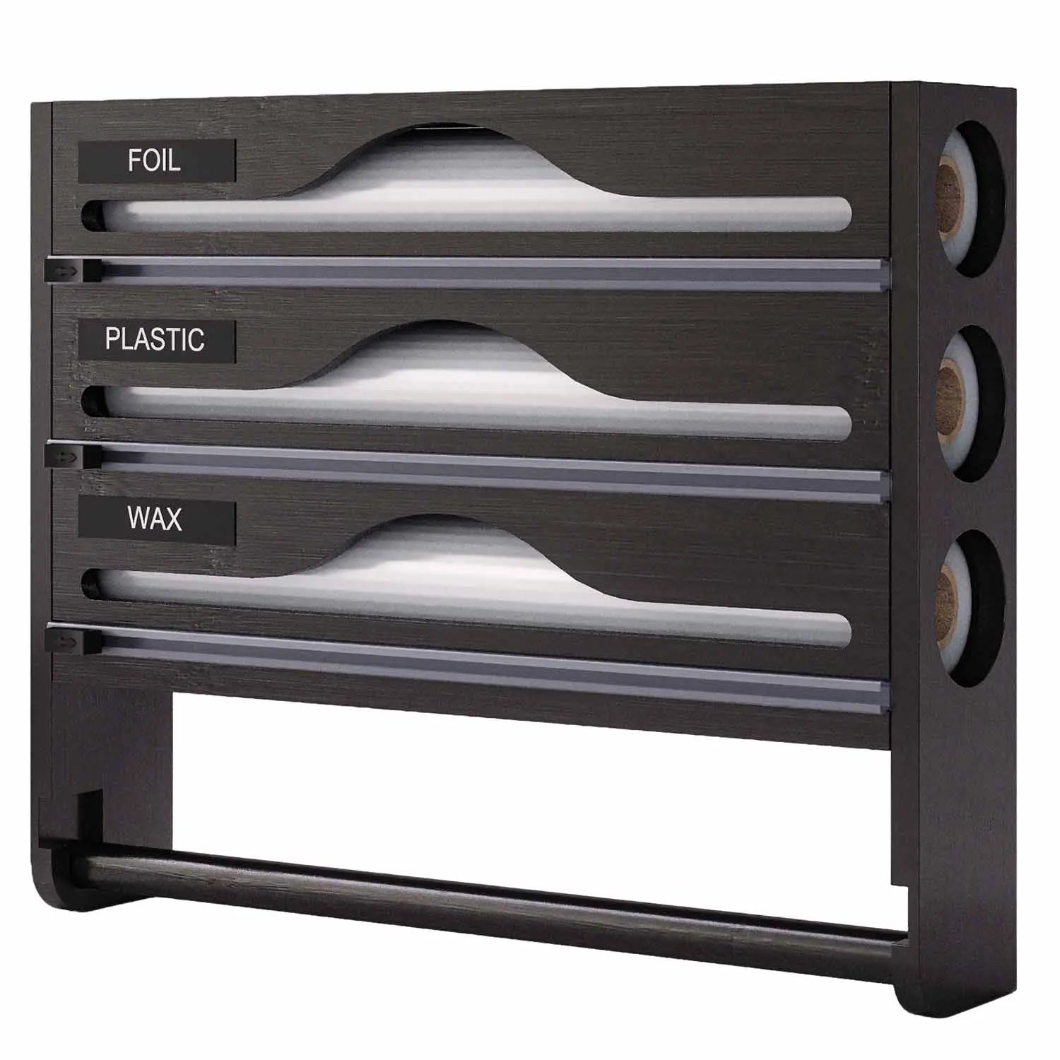Bamboo Foil and Plastic Wrap Dispenser Wall Mount Kitchen Drawer Organizer for Food Storage Holder
