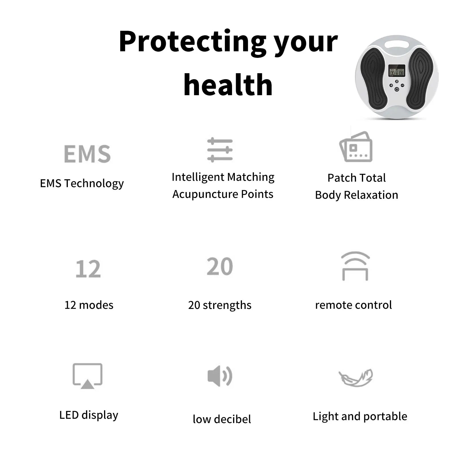 EMS TENS Foot Massager with 12 Modes and 20 Intensity Levels for Pain Relief and Blood Circulation