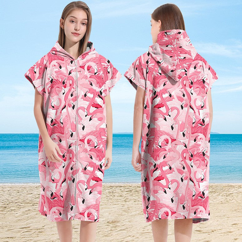 Ultra-Fine Fiber Wearable Hooded Bathrobe Cape Zippered Beach Towel for Comfortable Quick Drying
