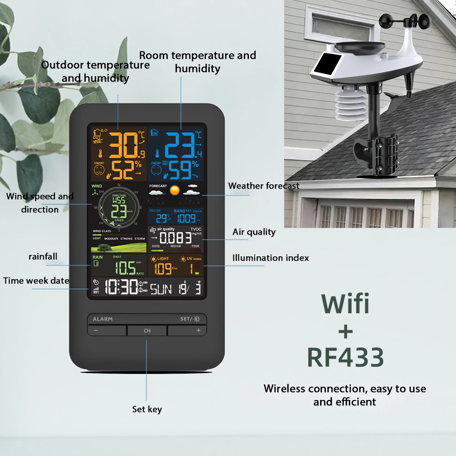Smart Wi-Fi Weather Station FJ3395TY-2 with Wind Speed Rain Gauge and Temperature Humidity Monitor