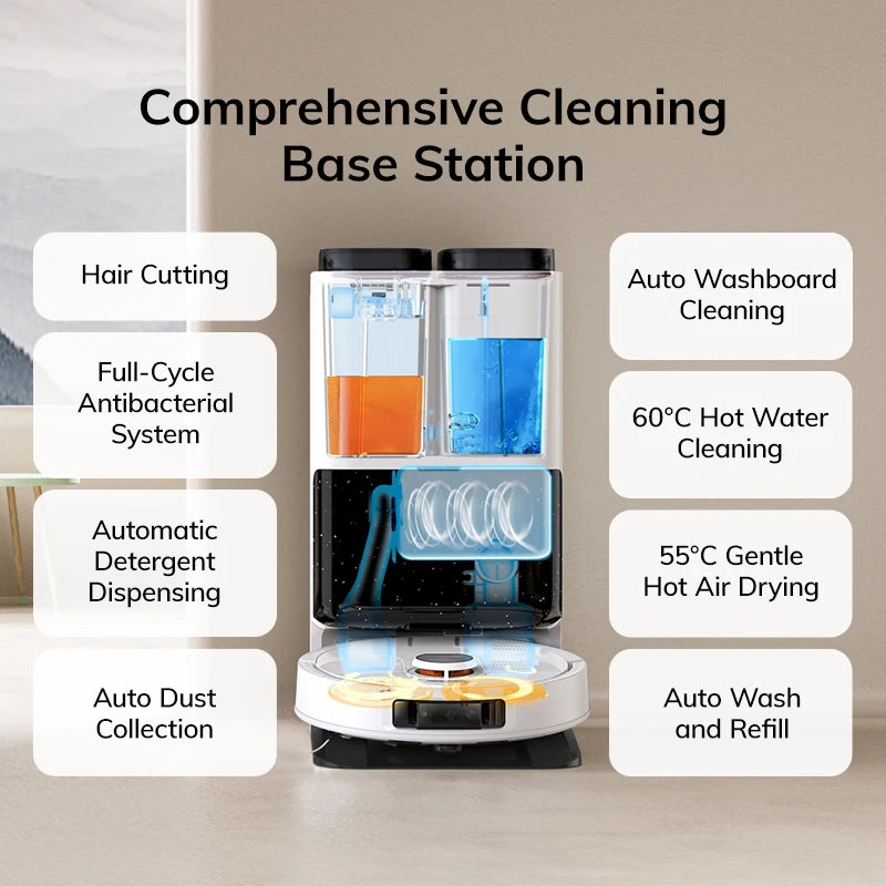 T60s Robot Vacuum and Mop with Self-Cleaning Station, Auto-Wash, Hot Air Drying and HEPA Filtration