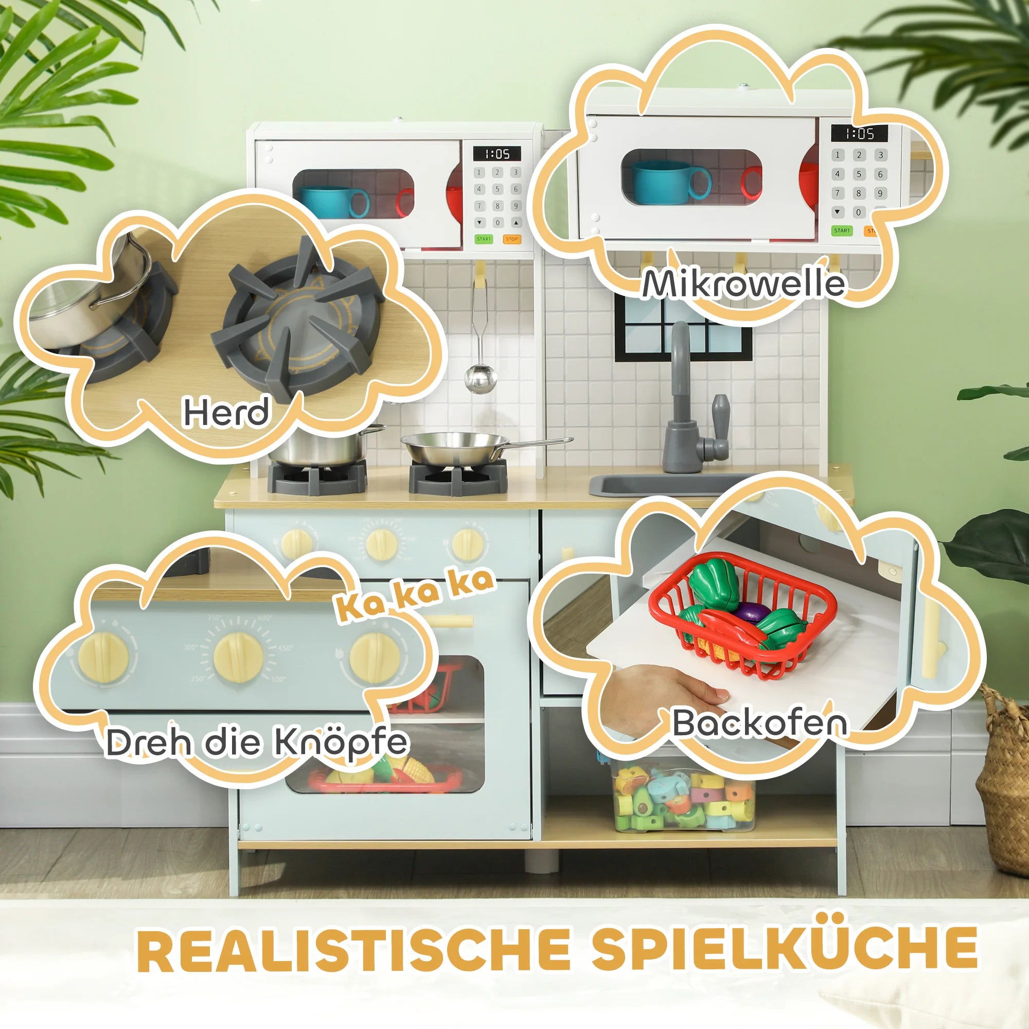 Wooden Kids Play Kitchen With Microwave, Stove, Oven And Cooking Accessories For Imaginative Role Play